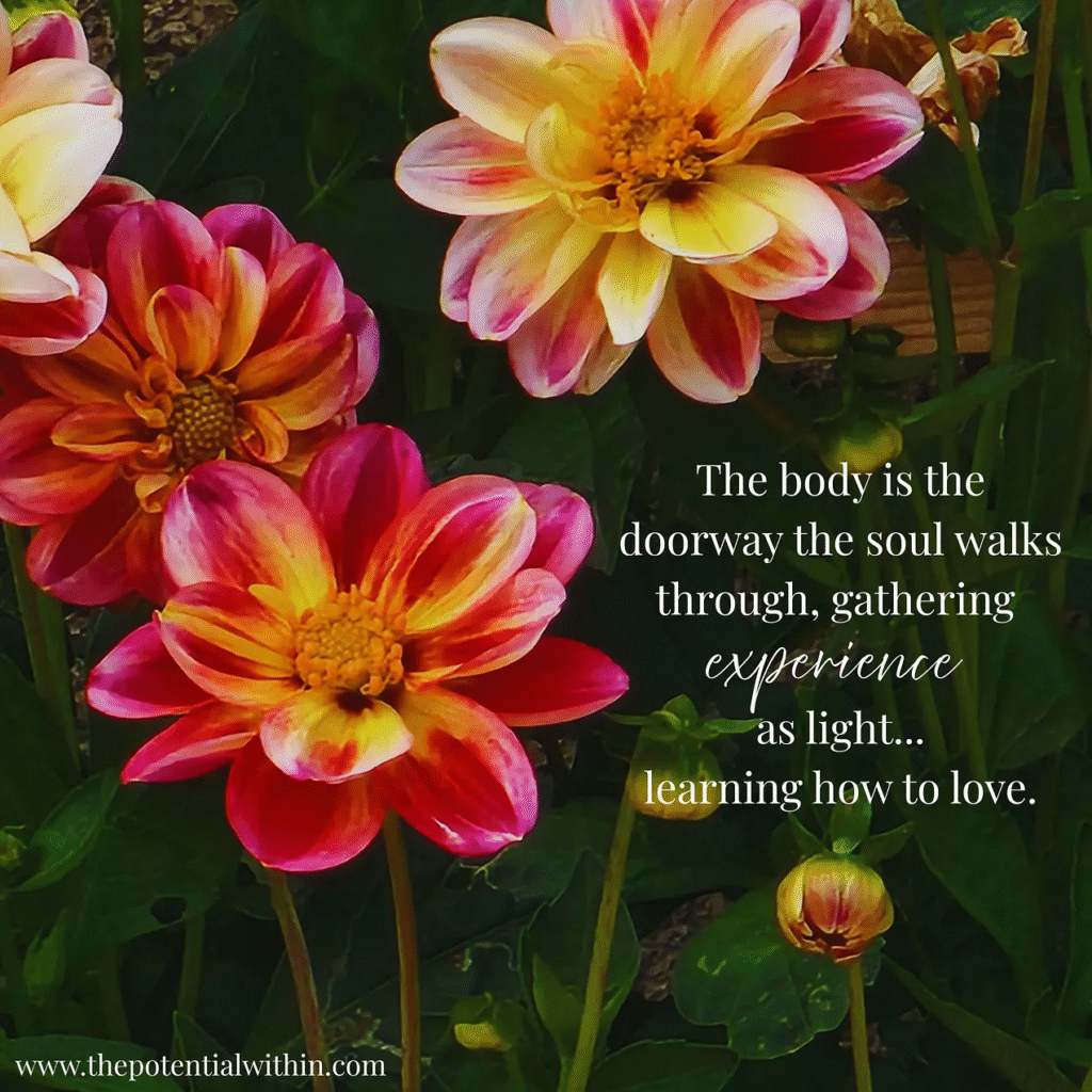 Before our cycle of lifetimes is complete, we will taste every shade of human experience. Few classrooms are as potent as the body. Learning to accept ourselves exactly as we are can take a lifetime, yet higher consciousness teaches us to work lovingly with whatever arrives. Illness can become a doorway to awakening. Body struggles can press us into compassion. Comparison fades when we remember each path is uniquely designed