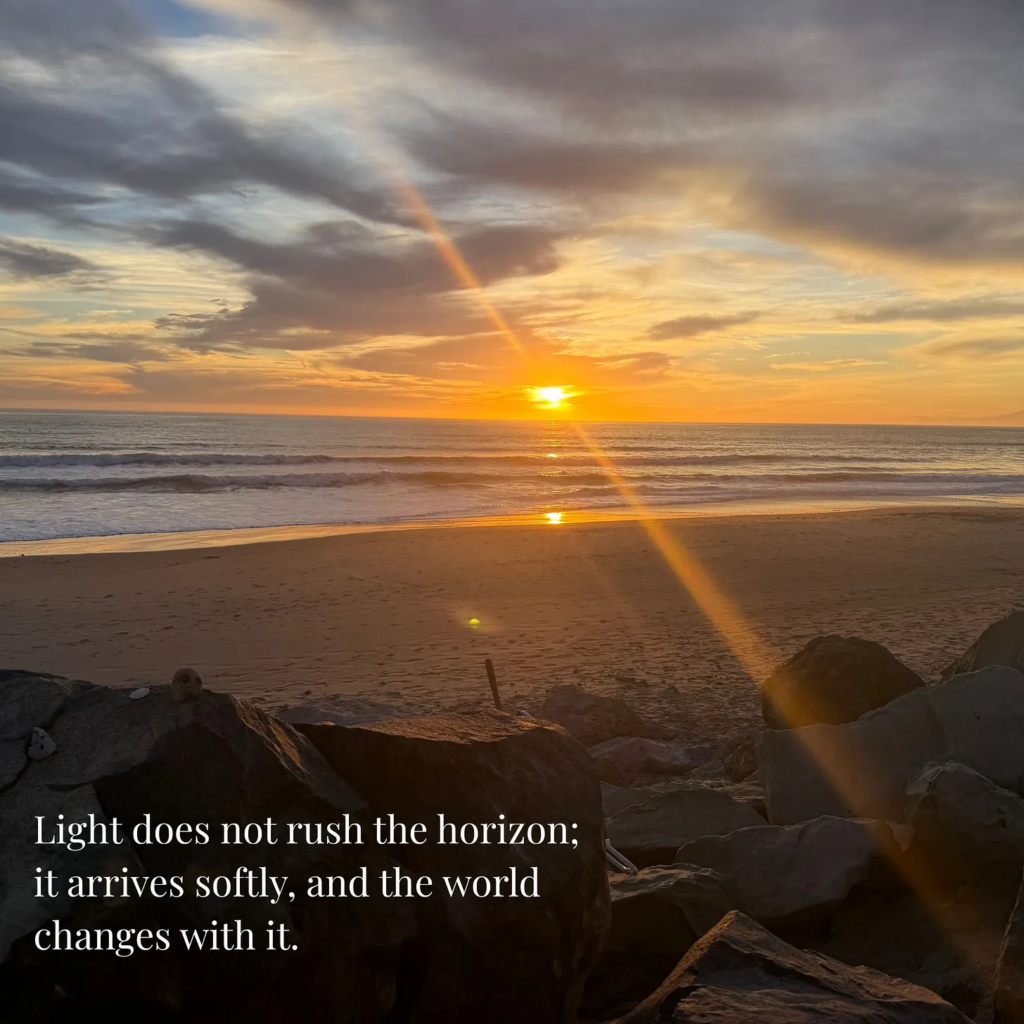 True change rarely arrives in the bright certainty of midday. It grows in quieter spaces where identities soften and possibilities widen, where we are no longer required to remain who we once were and where a deeper listening begins to take place. In this subtle landscape intuition becomes easier to hear, much like the first rays of dawn stretching across the water before the sun itself rises above the horizon.